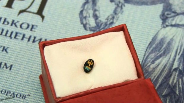 Таку роботу краще розглядати через лупу або окуляр. Адже розмір зернятка лише 3 на 8 міліметрів. Національні символи, вишиті на ньому, виявилися найменшими у світі. Це визнали експерти Книги рекордів України, йдеться у сюжеті телеканалу новин «24».