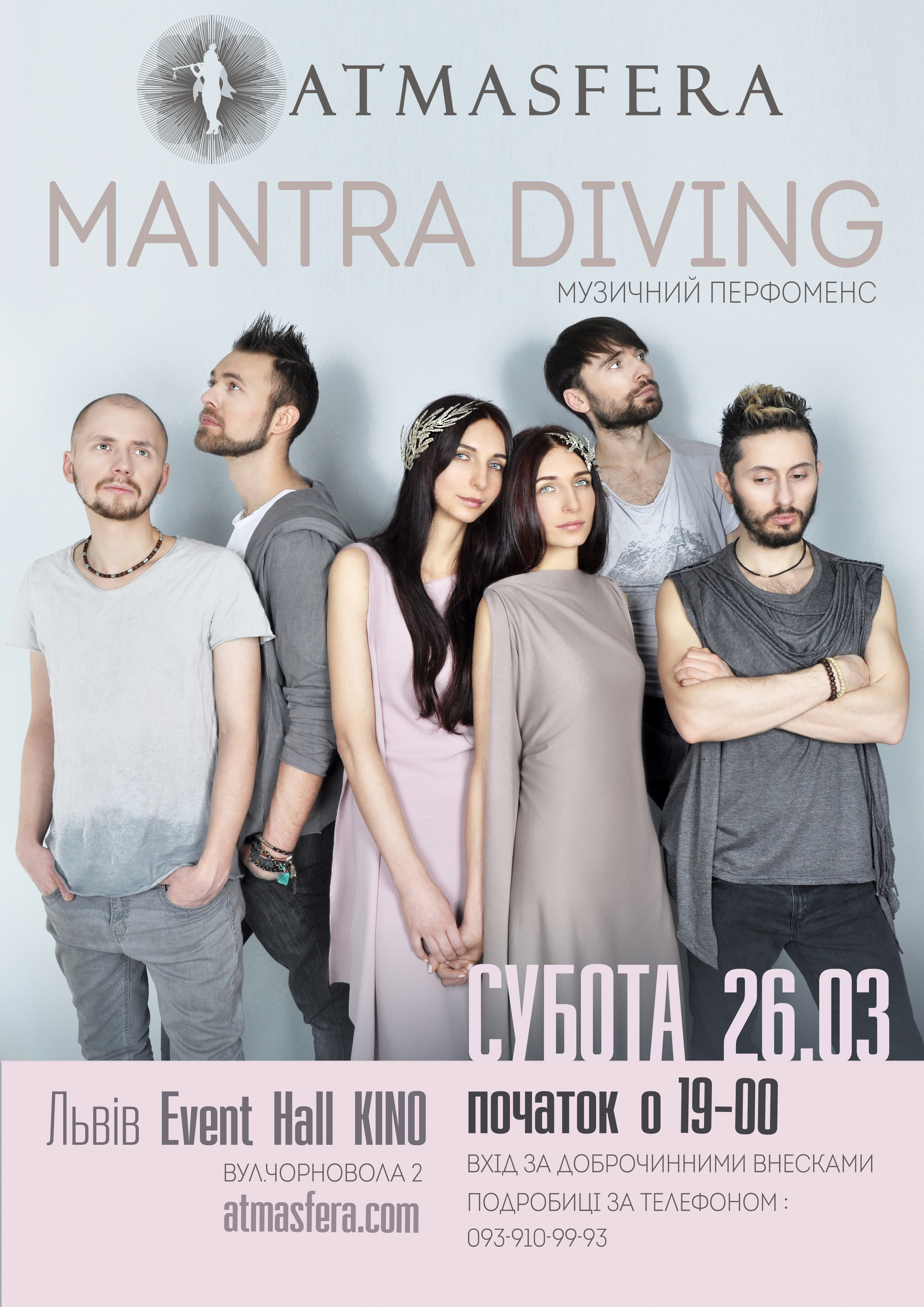 26 березня львів’яни та гості міста матимуть можливість не тільки послухати, але й поспівати на найстарішій мові світу - санскриті. Відтак, гурт «AtmAsfera» у рамках European Mantra Diving Tour створить у Львові музичне інтерактивне шоу «Mantra Diving». Концерт відбудеться у клубі «Event Hall KINO» (вул. Чорновола, 2). Початок о 19.00.