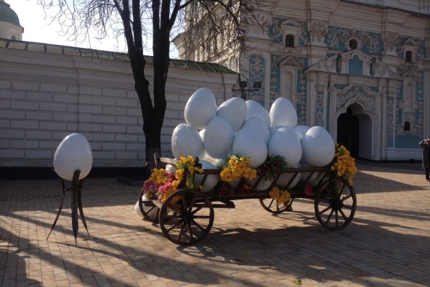 У центр Києва привезли гігантські яйця для «Фестивалю писанок».