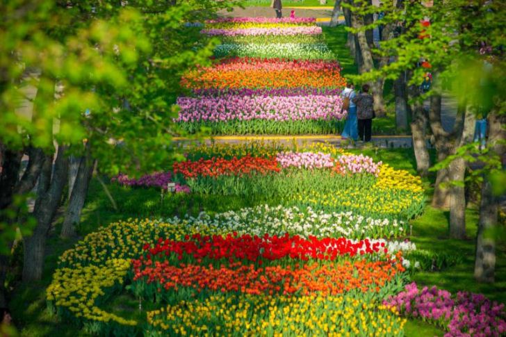 У цей час розквітає 500 тисяч цих весняних квітів! Відпочиньте у прекрасній зеленій зоні, для дітей є безліч розваг і атракціонів. Крім того, у вас буде можливість смачно перекусити в одному з кафе, розташованих на території парку.