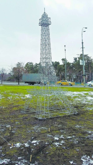 Ейфелеву вежу заввишки 5,4 м встановили у Дніпровському районі Києва поблизу парку Перемога. Після потепління її прикрасять квітами й ліхтарями. Світитиметься вночі.