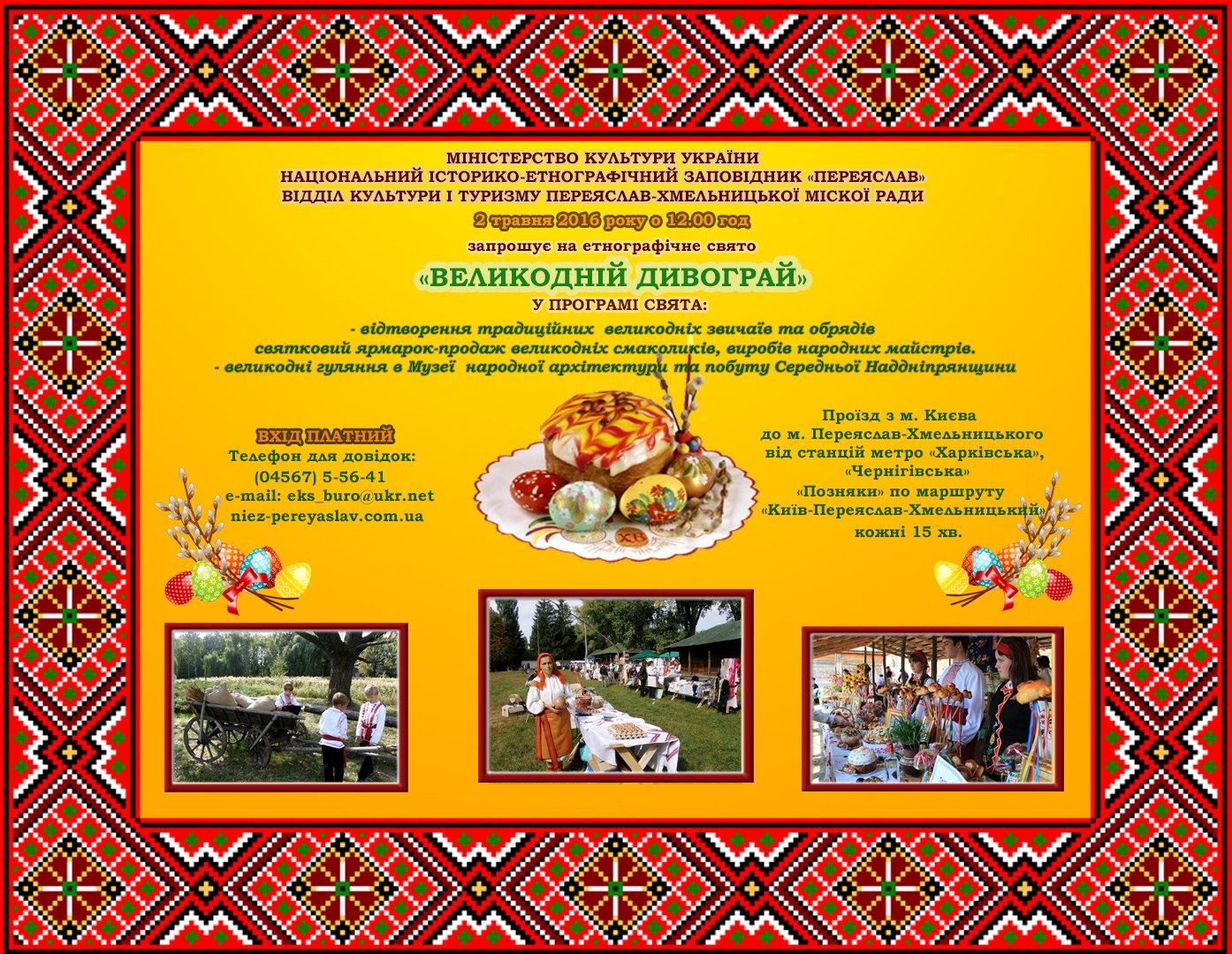2 травня 2016 року в Музеї народної архітектури та побуту Середньої Наддніпрянщини НІЕЗ «Переяслав» відбудеться свято «Великодній дивограй», присвячене величному християнському святу Великодню.