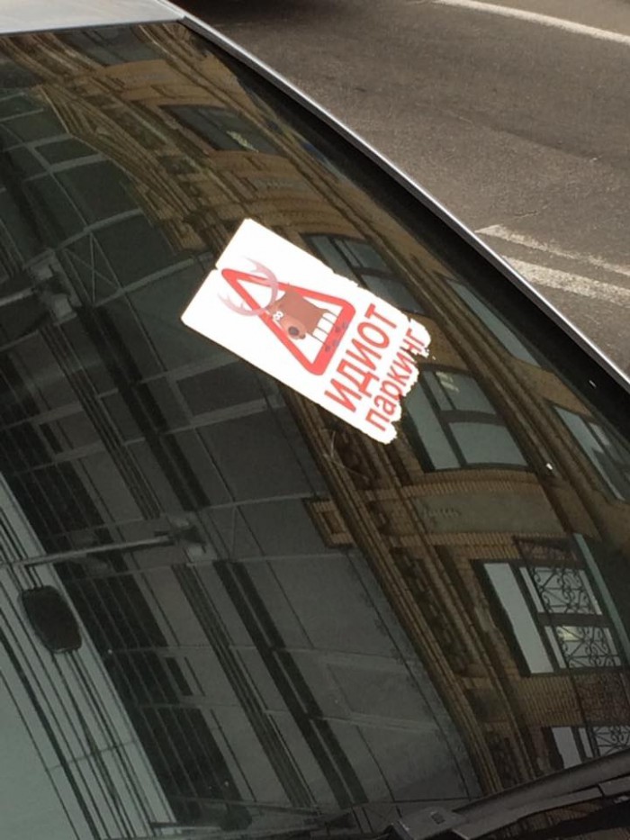 Картинки з лосем і написом «Ідіот паркінг» з’явилися на кількох автомобілях, пише Сегодня.