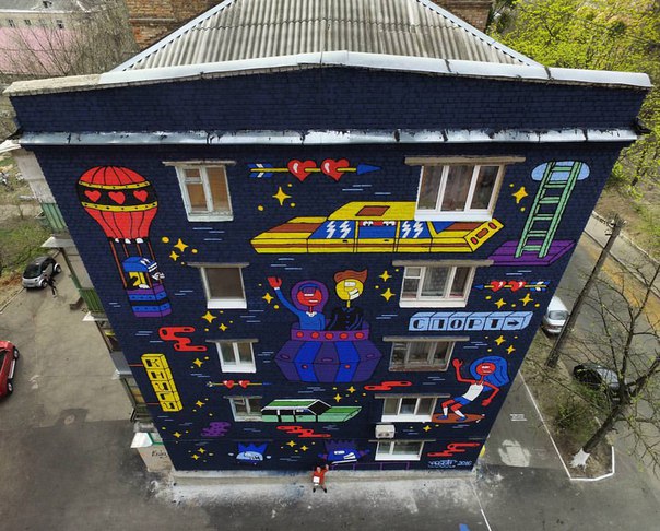 У Києві з'явився черговий мурал. Величезний малюнок прикрасив стіну будинку за адресою вул. Анрі Барбюсса 11/2.