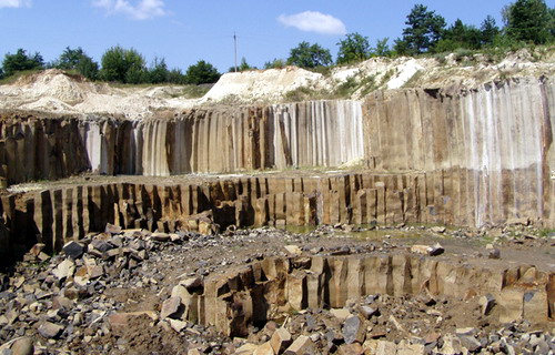 Базальтові стовпи - різновид базальтів, що має в поперечному перерізі - форму від чотирьохгранних до семигранних. Товщина стовпів коливається в межах від 0,6 до 1,2м. Переважають із товщиною 0,8-1,0м. Висота – від 3-х до 30м. Мають властивість давати прямий рівний розкіл.