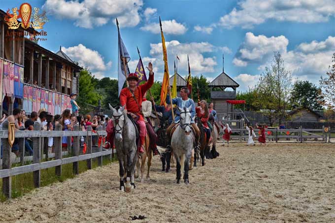 Актори кінно-трюкового театру покажуть видовищні номери з використанням середньовічної зброї.
