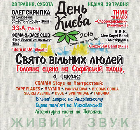 Святкування триватиме два дні, 28-29 травня, на багатьох локаціях – на Софійській площі, Михайлівській площі, Пейзажній алеї, Контрактовій площі та Андріївському узвозі.