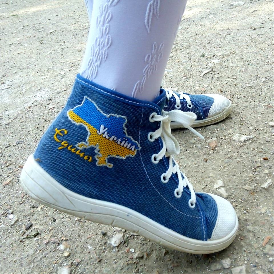 Крім учнів, до акції приєдналися і батьки, що одяглися в синьо-жовтих тонах як нагадування про те, що Крим - територія України.