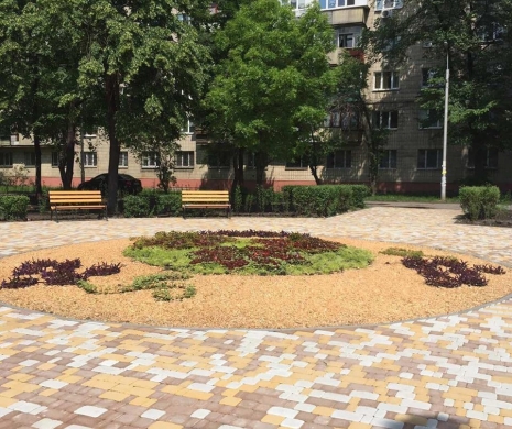 На столичному Подолі на вулиці Кирилівській, 124 облаштували новий сквер. Його основною визначною пам'яткою стала клумба у етно-стилі.