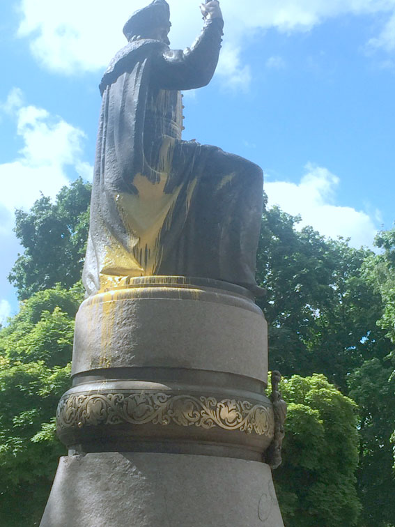 Пам'ятник гетьману Івану Мазепі, який находиться на Соборному майдані в Полтаві, облито фарбою.