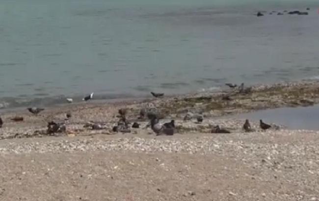 На записі видно, що людей в Феодосії потрібно ще пошукати - на пляжах лише поодинокі туристи, а набережні кафе порожніють. До того ж берег не прибирають від сміття, що приманює птахів.