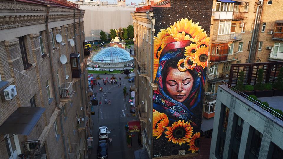 Він зазначив, що на цей мурал художника надихнули слов'янська міфології, образи жінок, змушених тікати від війни на Кавказі і соняшник - національна квітка України, що огортає жінку наче шаль.