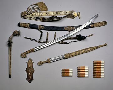 Серед експонатів представлено різні види клинків: кама (прямий), бебут (кривий), кваддара (довгий). Географія виставки охоплює весь Північний Кавказ і Закавказзя. Перлиною колекції організатори називають дагестанські кинджали. Зокрема, вироби прославлених майстрів з Кубачі, одного з найбільших центрів обробки металів на Кавказі. Особливістю техніки кубачинців є срібні оправи, покриті різнокольоровими емалевими узорами.