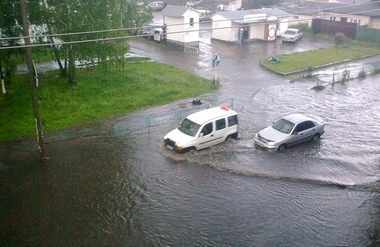 Житомир накрила потужна злива, що затопила центральні вулиці міста.