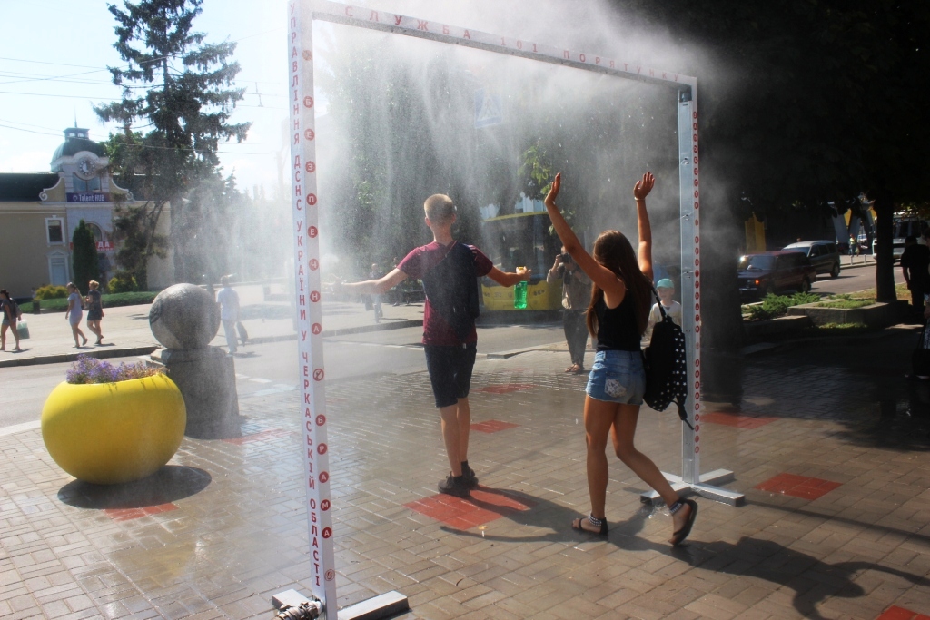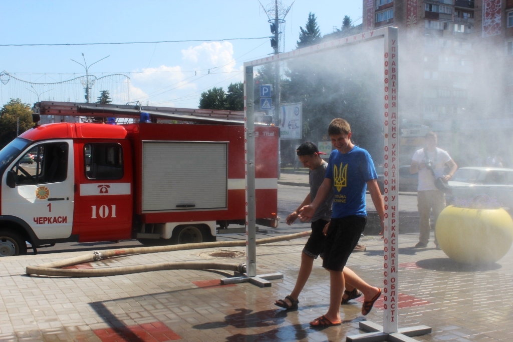 Водяну завісу, яку назвали "Брамою безпеки" відкрили сьогодні, в понеділок, в центрі Черкас, щоб порятувати містян він спеки.