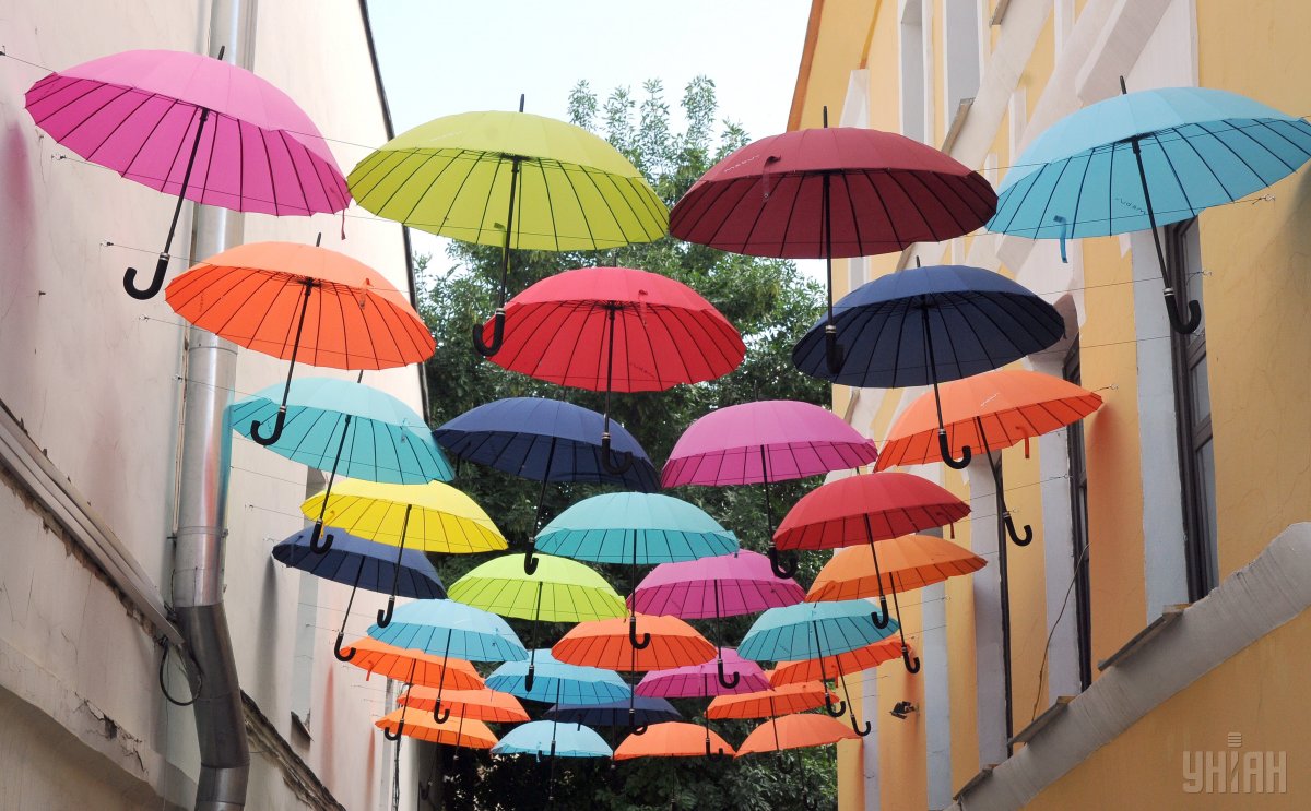 У центрі Харкова з'явилася своєрідна інсталяція з відкритих різнокольорових парасольок.