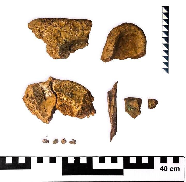 «У розкопі на площадці виявлено три фрагменти тігелів, шість фрагментів мідних пластин, мідний шлак та кістки на яких є сліди міді», – повідомив він.