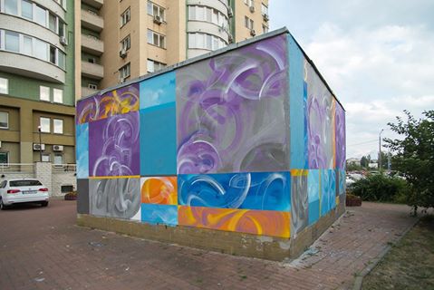 Учасник фестивалю Mural Social Club Wius (Рома Віас) подарував Києву ще одну абстрактну роботу, яка займає відразу три невеликі стіни за адресою Героїв Сталінграда, 22.
