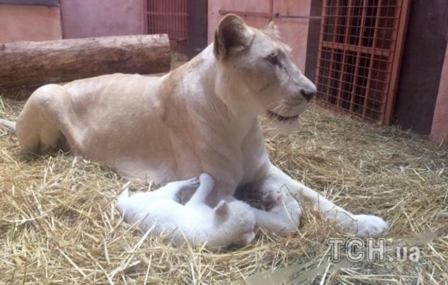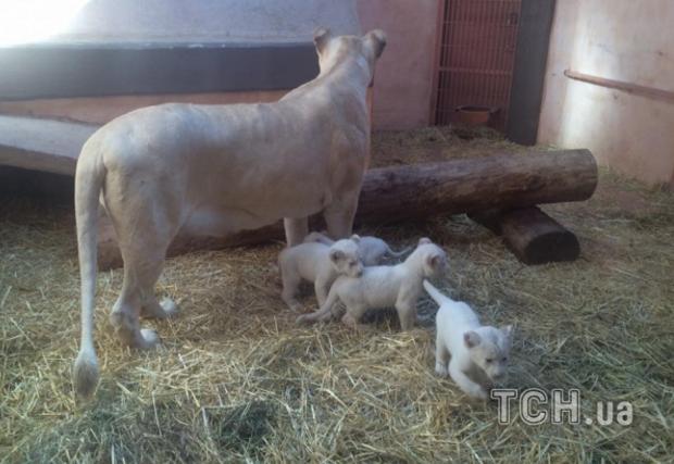 У приватному зоопарку під Києвом народилися відразу п’ять рідкісних білих левенят.