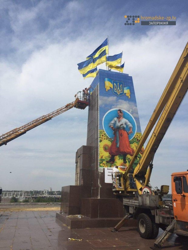 На постаменті колишнього пам'ятника Володимиру Леніну зобразили запорізького козака.