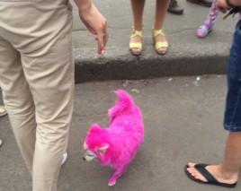 У Києві сфотографували собаку, хутро якої пофарбоване в яскраво-рожевий колір.
