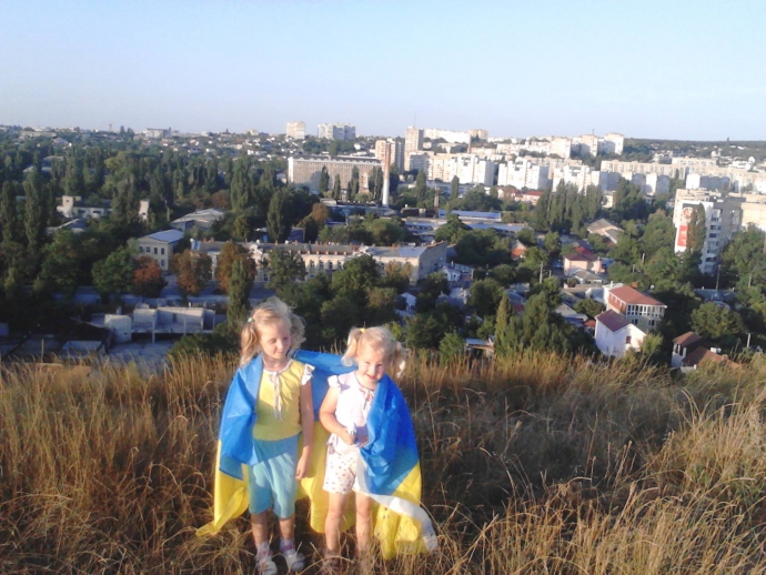 У мережі опублікована зворушлива фотографія двох дівчаток в Сімферополі в окупованому Криму, загорнутих в український прапор. Про це повідомляє ONLINE.UA з посиланням на сторінку в Facebook "Крим. Реалії".