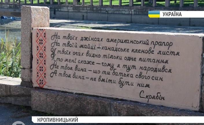 Протягом серпня молодь створила шість поетичних стін. Роблять це на волонтерських засадах. Набережну міста тепер прикрашають віршовані рядки Скрябіна "Сам собі країна", а на стіні міськради – вірш Василя Симоненка "Ти знаєш, що ти людина?"