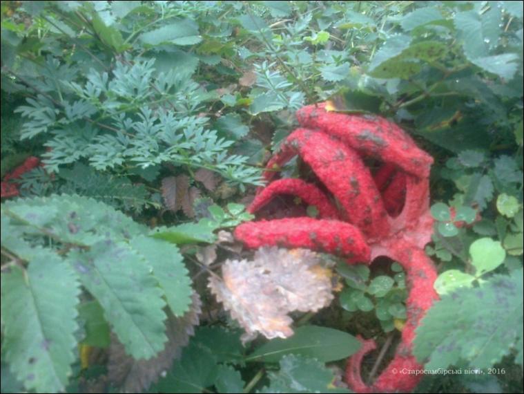 Загалом чоловік на невеличкій галявині натрапив на п’ять таких грибів. Каже, що, окрім жахливого вигляду – схожий на руку мерця, наче вилазить з могили, рослина має ще й неприємний запах, щось на кшталт протухлого м’яса. Тому його особливо полюбляють мухи. Власне, вони й розносять спори, розмножуючи таким чином рослину.