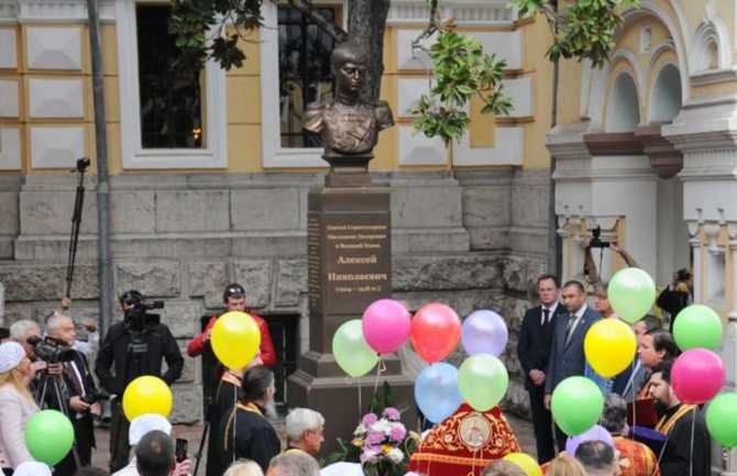 Відкриття пам'ятника розстріляному синові останнього імператора Росії відбулося біля входу в собор Олександра Невського.