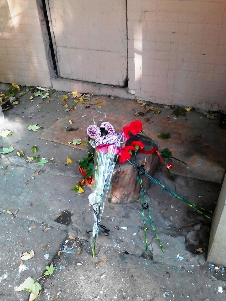На місці загибелі бойовика з'явилися кілька скромних букетів