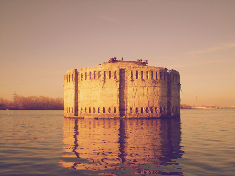 Посеред Дніпра, неподалік від Південного моста і Осокорків, знаходиться об'єкт у вигляді круглої виступає з води на кілька метрів залізобетонної вежі.