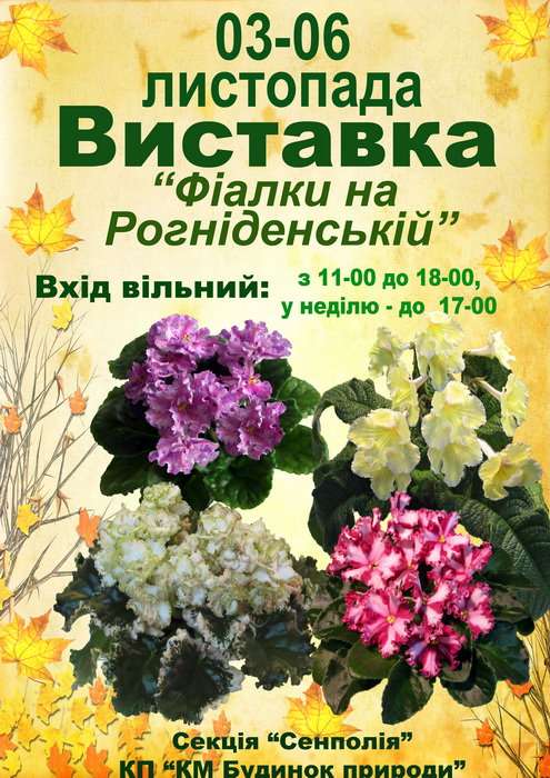 Окрім фіалок на виставці будуть представлені рослини з колекції відомого українського селекціонера Юлії Склярової. Її сорти стрептокарпусів Веселка, Джокер, Тірамісу, Писанка, Слава України, Зефір та інші вже давно бавлять око поціновувачів цих рослин. Та пані Юлія на цьому не зупиняється. На одній з виставок вона представляла свій новий сорт «Вечірній Київ» і ось зараз вже можна буде придбати його молоді рослинки.