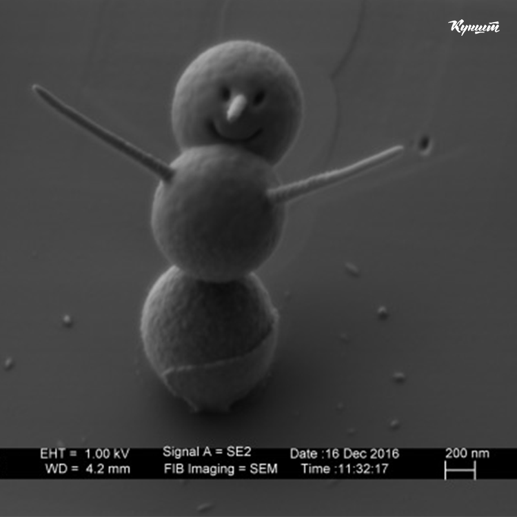 Як зазначаэться, висота сніговика – 3 мікрони, це 0,003 міліметра. Для порівняння, товщина волосини більша за нього в 25 разів.