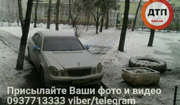 Так, цього разу під приціл мешканців столиці потрапив власник автомобіля марки Mercedes, який залишив свою "крихітку" прямо на доріжці для пішоходів. "Геній", таким чином, перекрив прохід до дитячого садка.