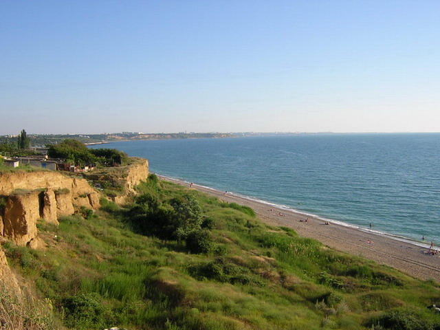 Пляж на території заповідника Херсонес Таврійський. Необладнаний стихійний пляж, гальково-кам'янистий.