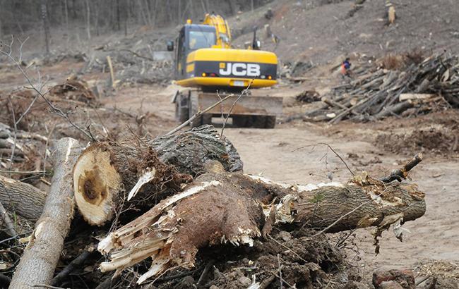 Дерева зрубали, коли активісти, які захищають ліс, возили медикаменти українським бійцям на Донбас Біля Обухова Київської області продовжують вирубувати ліс.
