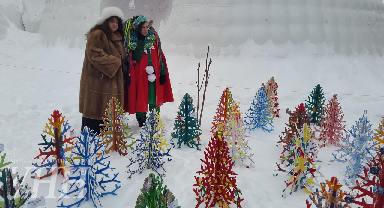 Дерев’яні ялинки, які зробили учні з 200 столичних шкіл, розмістили в Маріїнському парку, де на новорічні свята знаходиться резиденція Санта Клауса.