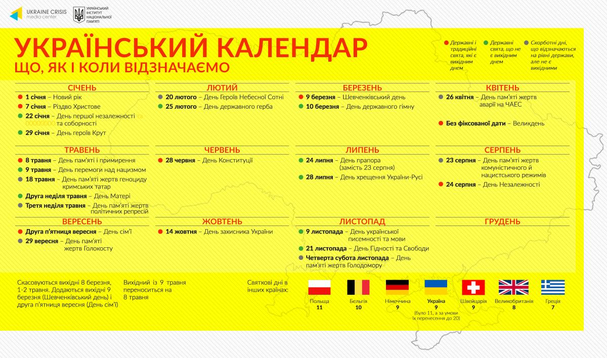 Проект нового календаря опублікувала прес-служба Українського інституту національної пам’яті.