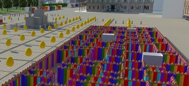 Його встановлять напередодні Великодня, в межах відкриття Всеукраїнського фестивалю писанок, що проходитиме в столиці з 13 квітня по 2 травня 2017 року. «В рамках Всеукраїнського фестивалю писанок на Михайлівській площі для дітей та дорослих ми встановимо лабіринт із гігантських олівців.
