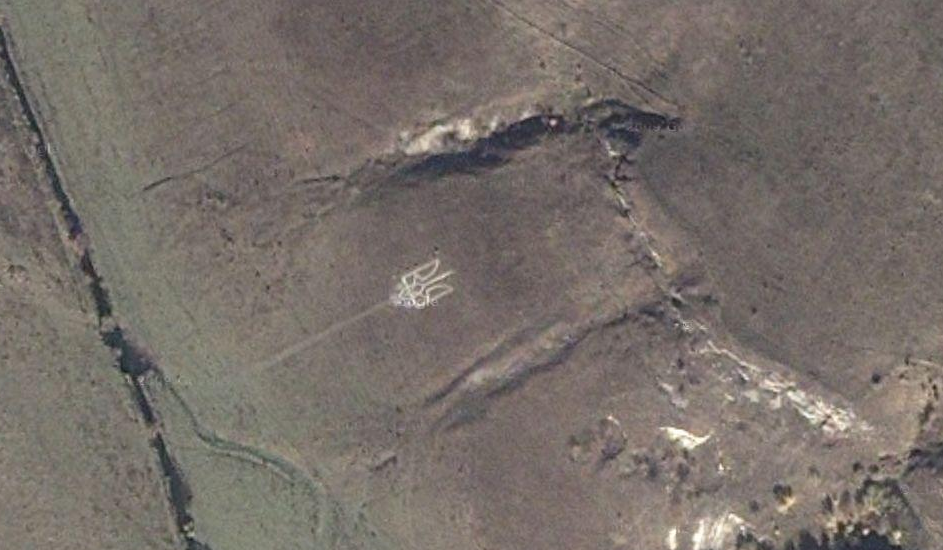 Рукотворний символ чітко видно у загально-поширених супутникових фотознімках Острині, а також, завдяки вдалому розташуванню, з усіх околиць села Остриня та дороги Н18 Івано-Франківськ — Бучач — Тернопіль.