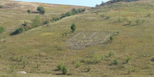 Тризуб викладено влітку 1992 р. колишнім воїном Української Повстанської Армії Анастасієм Паньковичем Козаком на місці, де точились запеклі бої між українськими повстанцями сотні Пилипа Орлика та більшовиками, на відзнаку вшанування пам'яті полеглих побратимів та першої річниці з Дня проголошення незалежності України. Нижче тризубу зазначений рік викладання «1992» та слово «воля».