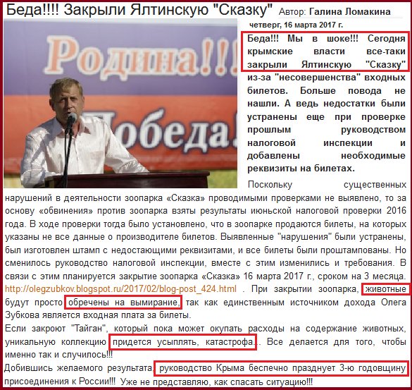 "Біда !!! Ми в шоці !!! При закритті зоопарку тварини будуть просто приречені на вимирання. Якщо закриють Тайган, який поки може окупати витрати на утримання тварин, унікальну колекцію доведеться присипляти.