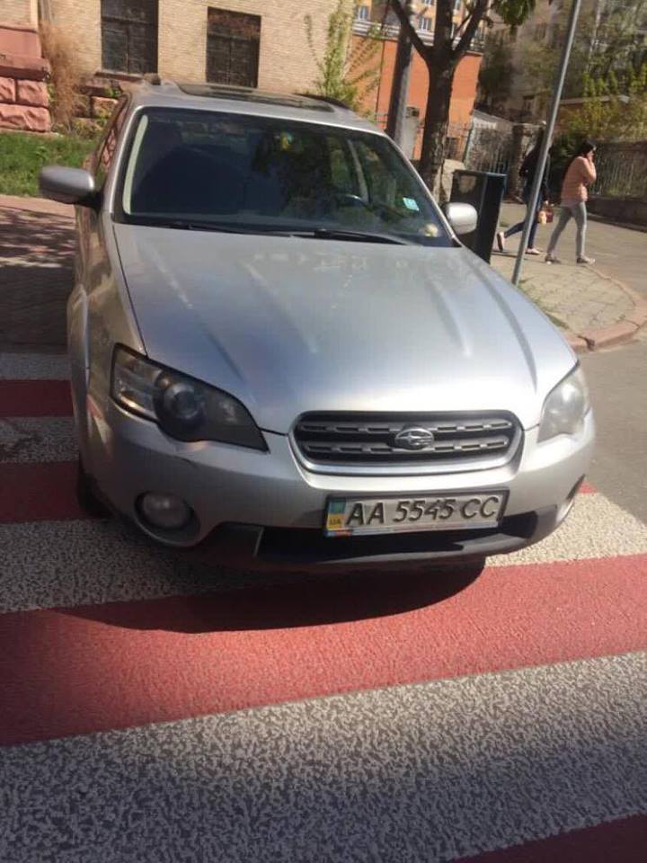 Цього разу мешканців столиці розлютив своїм зверхнім нахабством власник автомобіля марки Subaru. Водій припаркував свого "залізного коня" прямо посеред зебри, перегородивши прохід пішоходам та проїзд іншому транспорту.