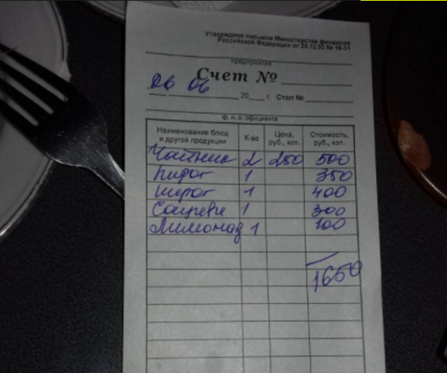 У Twitter-акаунті "RoksolanaToday & Крим" опублікована фотографія рахунку замовлення в одному з закладів Судака. "Ось такі пироги", - йдеться в пості.