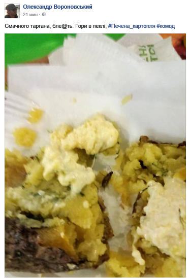 Як виявилося, такий "привіт від шеф-кухаря" отримав журналіст Олександр Вороновський. Обурений клієнт одразу ж оприлюднив відповідний пост у мережі, поділившись вельми неприємним кадром.