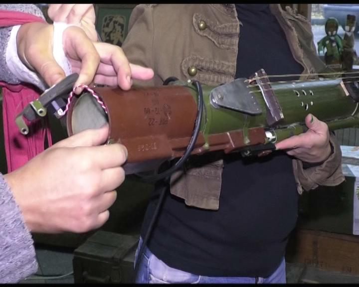 "Гітара створена раніше, але була тільки декоративною, експонатом мандрівної виставки "Військово-польовий арт". А Віктор Райський обладнав її звукознімачами-п’єзодатчиками і таким чином надав їй голос. Гурт "Лена Іванова" виконав перші твори на цих незвичайних інструментах - гітарі з гранатомета, флейті і кастаньєтах із гільз", - розповідається у сюжеті.