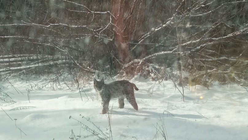“Рись вийшла з лісу на галявину, спокійно поводилась”, — написали на сторінці природного парку.