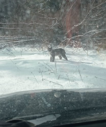 В урочищі села Мита Стрийського району вже два роки спостерігають за самкою рисі з рисеням. Очевидно малеча підросла і перейшла до самостійного життя, бо саме вийшло з лісу. Лісничому випадково вдалося зробити фото звіра з автомобіля.