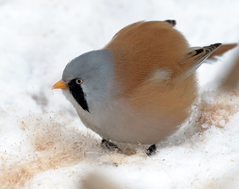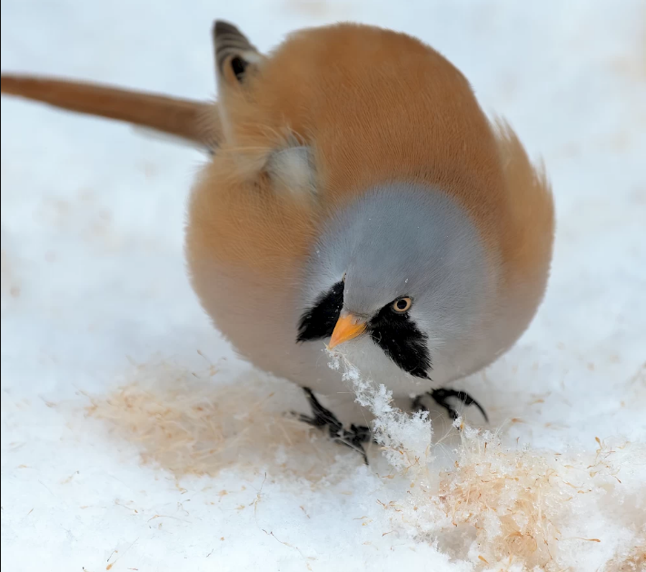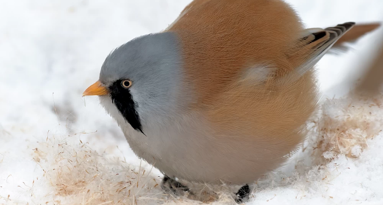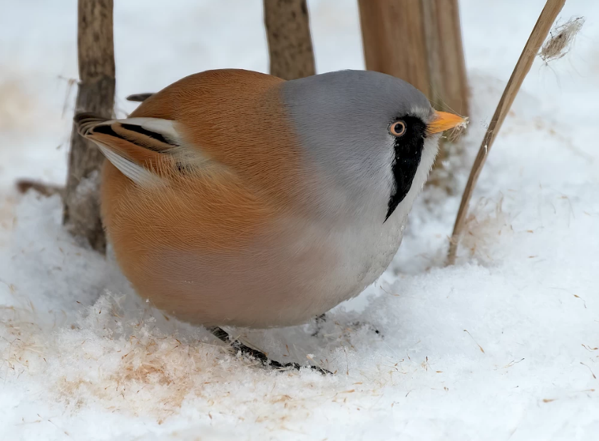 Вусата синиця - це невеликий, трохи менший за горобця птах.