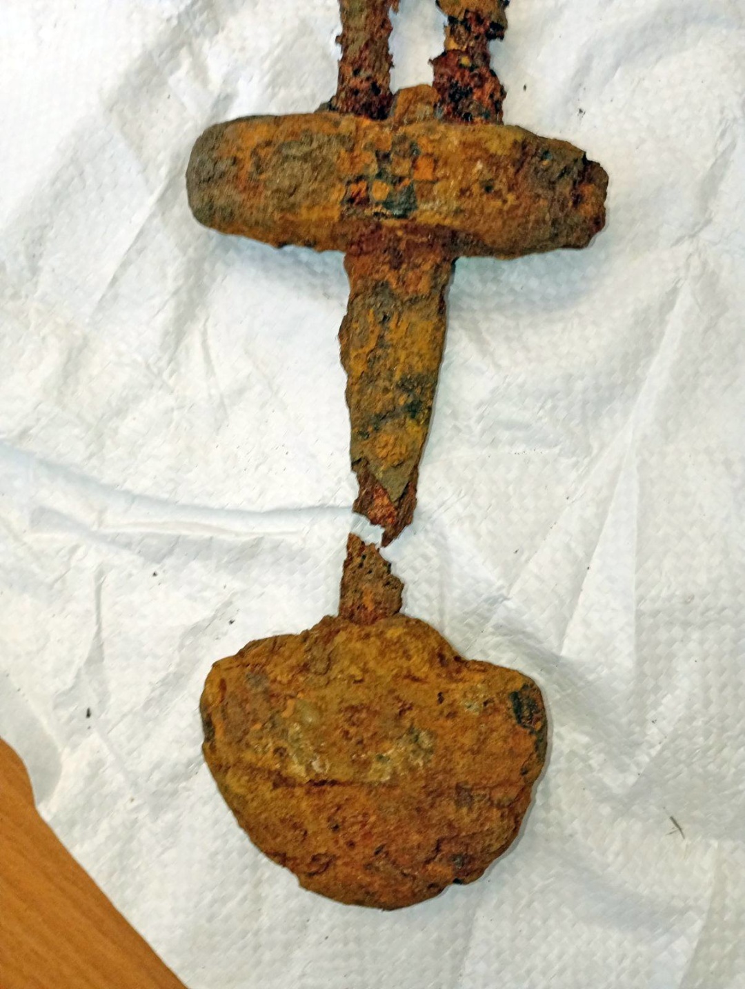 «Попри погану збереженість клинка, він буде достойним експонатом в експозиції музею. По-перше, цей меч знайдений з бутероллю (закінченням піхов), що трапляється нечасто. Бутероль бронзова та декорована срібною інкрустацією. Також на диво добре збереглися закінчення руків’я та перехрестя. На мечах такого типу вони завжди орнаментовані, кожного разу це інший, відмінний декор. Судячи з того, що я бачу, тут йдеться про хрести та плакування сріблом і міддю», - розповів реставратор музею Юрій Бут.